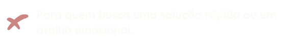 Você identifica as feridas emocionais que moldam suas escolhas, reações e vínculos, e começa a interromper ciclos como abandono, rejeição, culpa, manipulação, humilhação e traição.