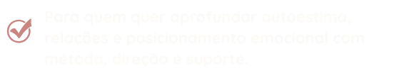 Você olha para a base emocional que influencia amor, valor, pertencimento, limite e escolha de parceiro, e entende como isso repercute na sua vida hoje.